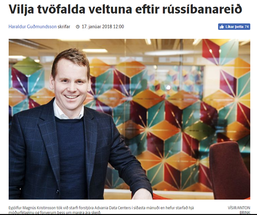 Eyjólfur Magnús Kristinsson forstjóri Advania Data Centers var spurður út í uppbyggingu fyrirtækisins og áætlanir sem gera ráð fyrir að veltan tvöfaldist á þessu ári og verði um sex milljarðar króna.